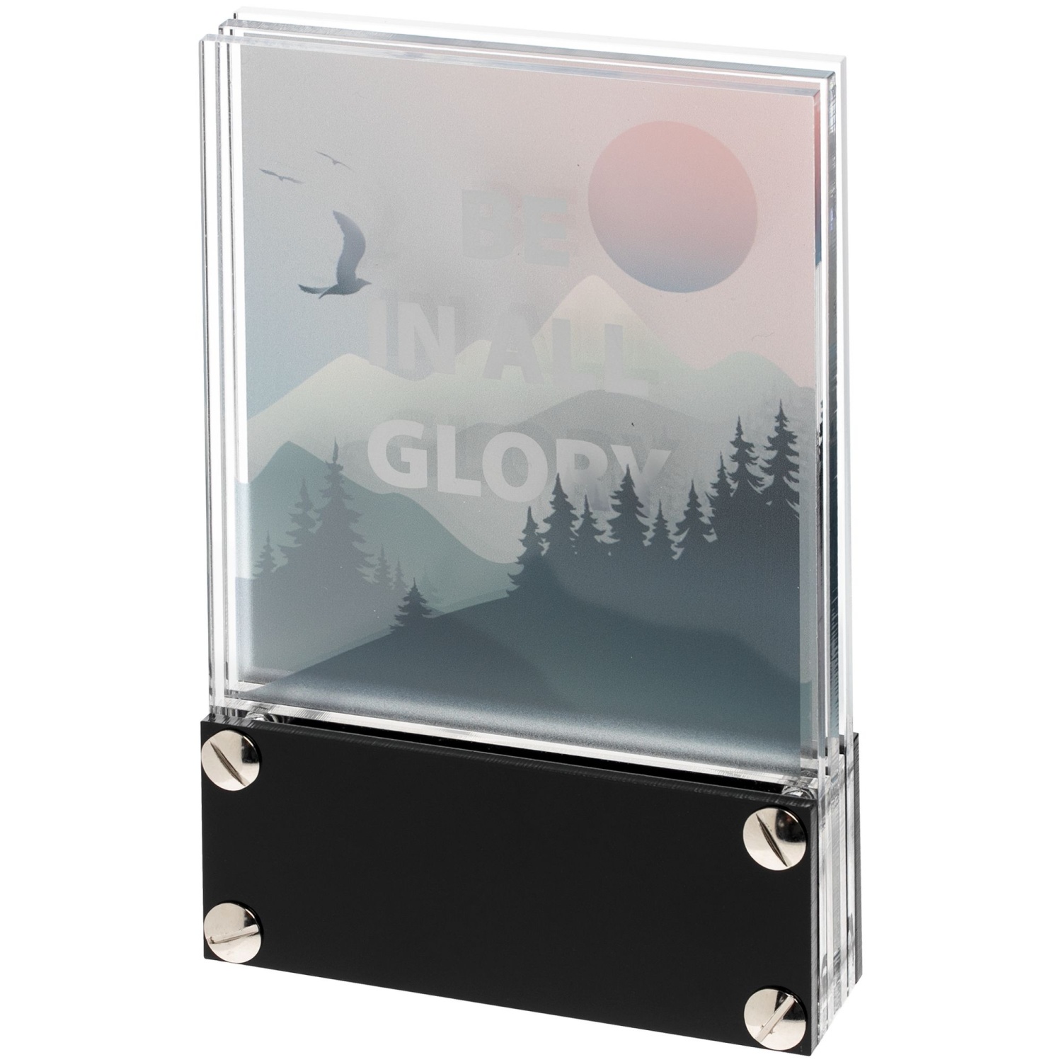 Придать награде законченный вид поможет шильд с гравировкой на основании.Трехслойная награда из акрила с креплением на 4 винтах. Толщина прозрачных панелей - 4 мм.